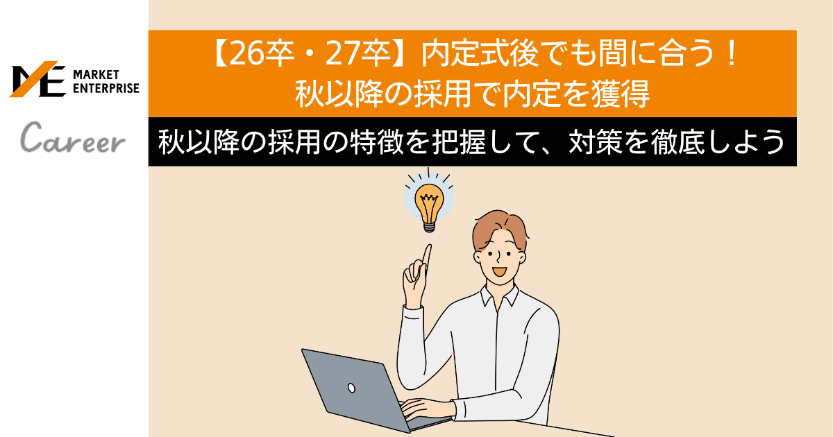 この記事では、秋以降の採用の特徴と、今から内定を獲得するためのポイントを解説していきます。