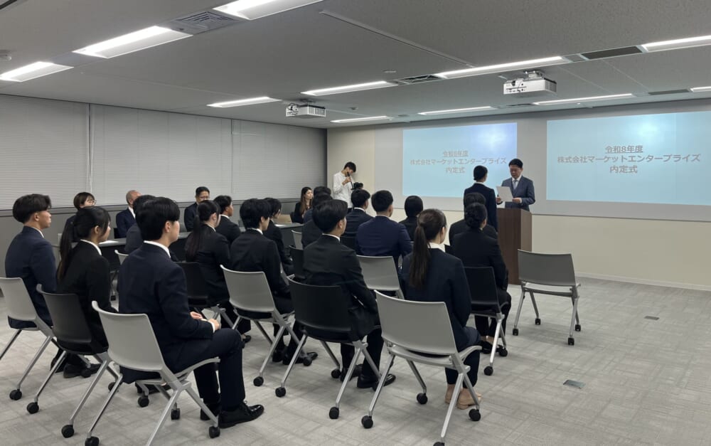 10月7日、2026年度新卒入社予定の皆さんをお迎えし、本社にて内定式を行いました。内定式前にはグループワーク、式後には先輩社員との懇親会も実施しました。