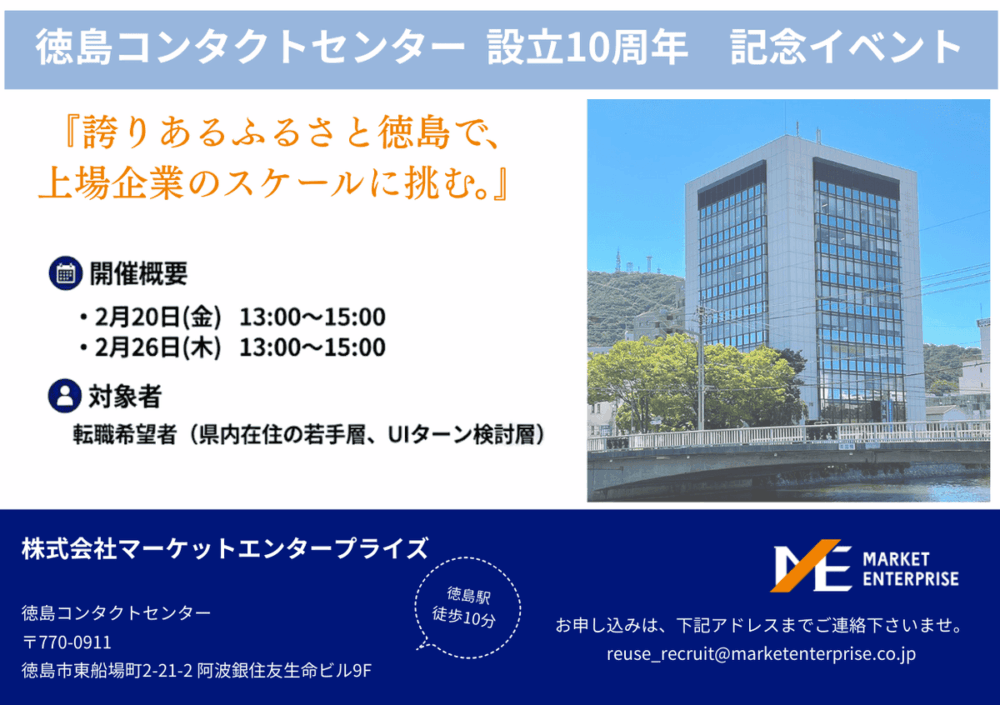 また、2月には徳島オフィス開設10周年を記念して、採用イベントを開催いたします。