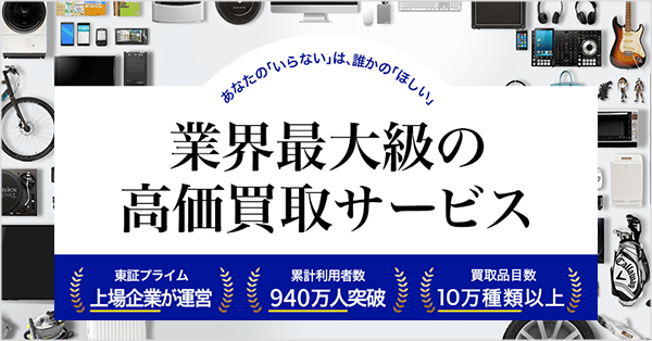 買取においては、生活必需品から趣味嗜好品、農機具や建設機械など法人向けの商材に至るまで、幅広い商品を取り扱い、出張・宅配・店頭での買取を行なっています。また、現在約30カテゴリーの買取Webメディアも運営しており、年間40万件という日本最大級の買取依頼をいただいています。
