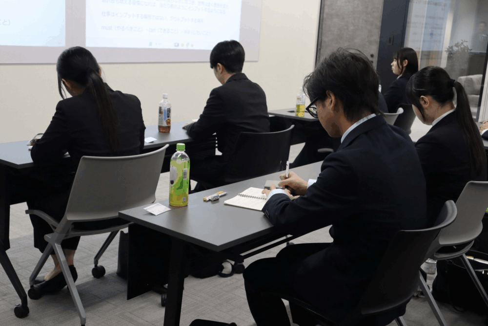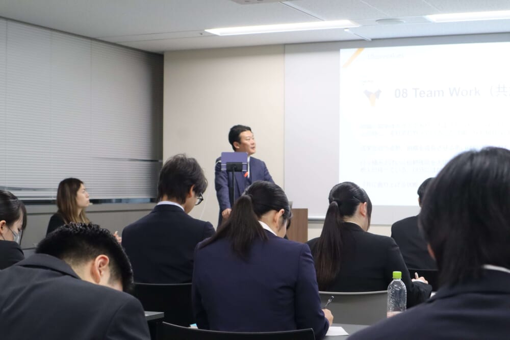 入社式を終え、午後からは代表による約1時間半の理念研修が行われました。