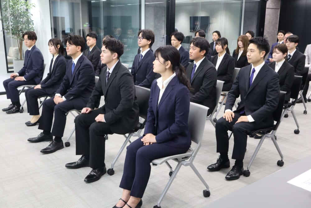 入社式では代表や取締役をはじめ、執行役員、人事が参加し、新入社員を歓迎しました。