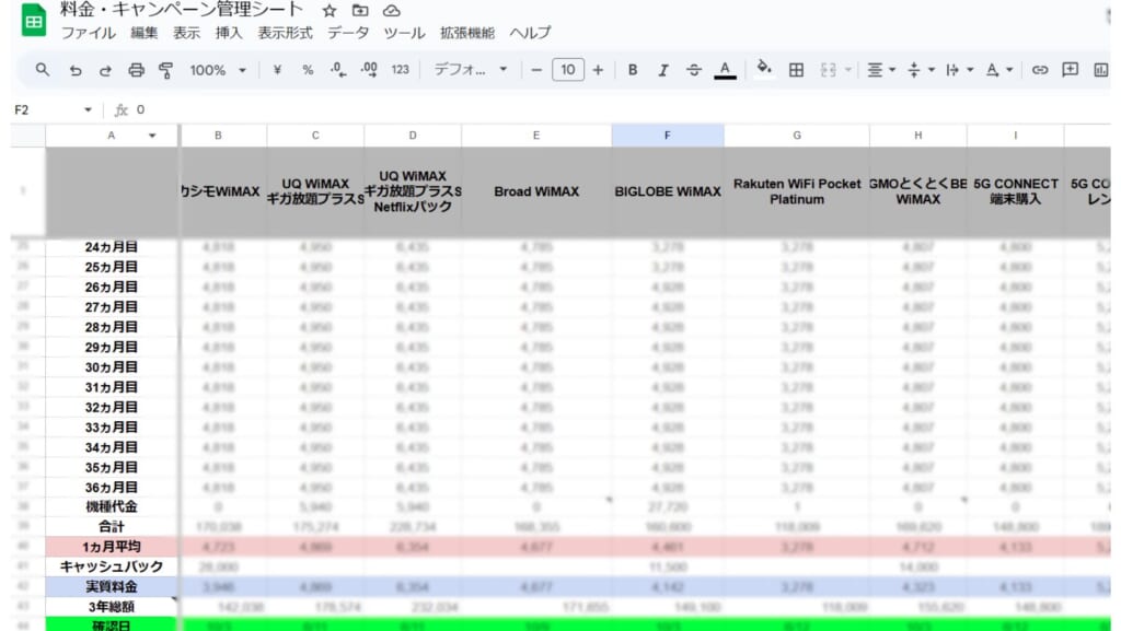 ※上記は、カシワン編集部で実際に使用している「料金・キャンペーン管理シート」