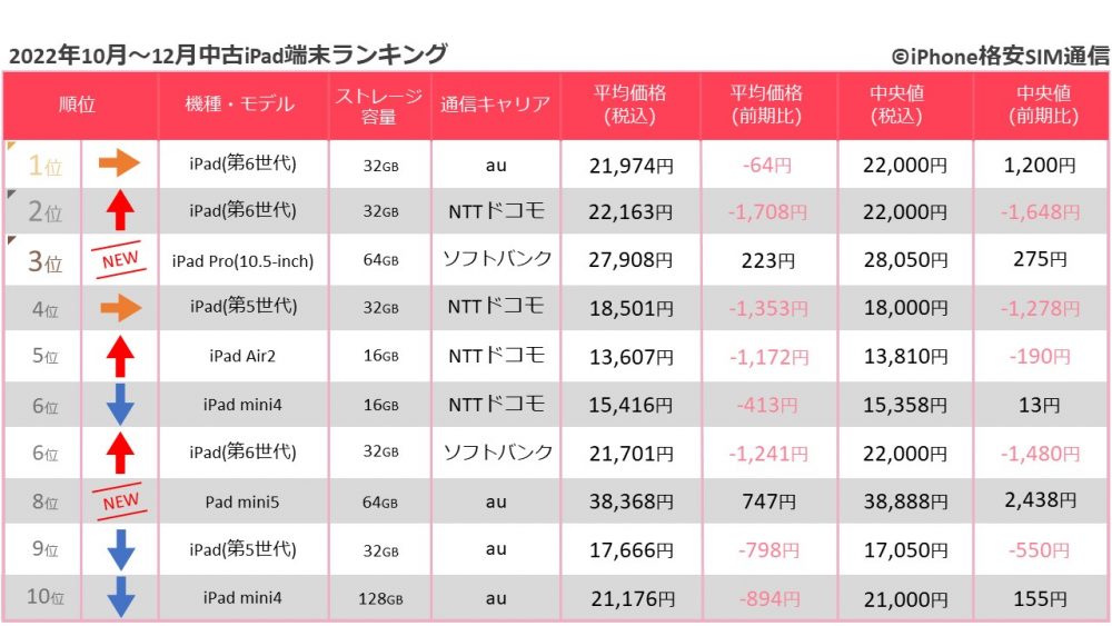 しかし、そんな中でもiPad(第6世代)の取引は、前回の調査に続き好調です。